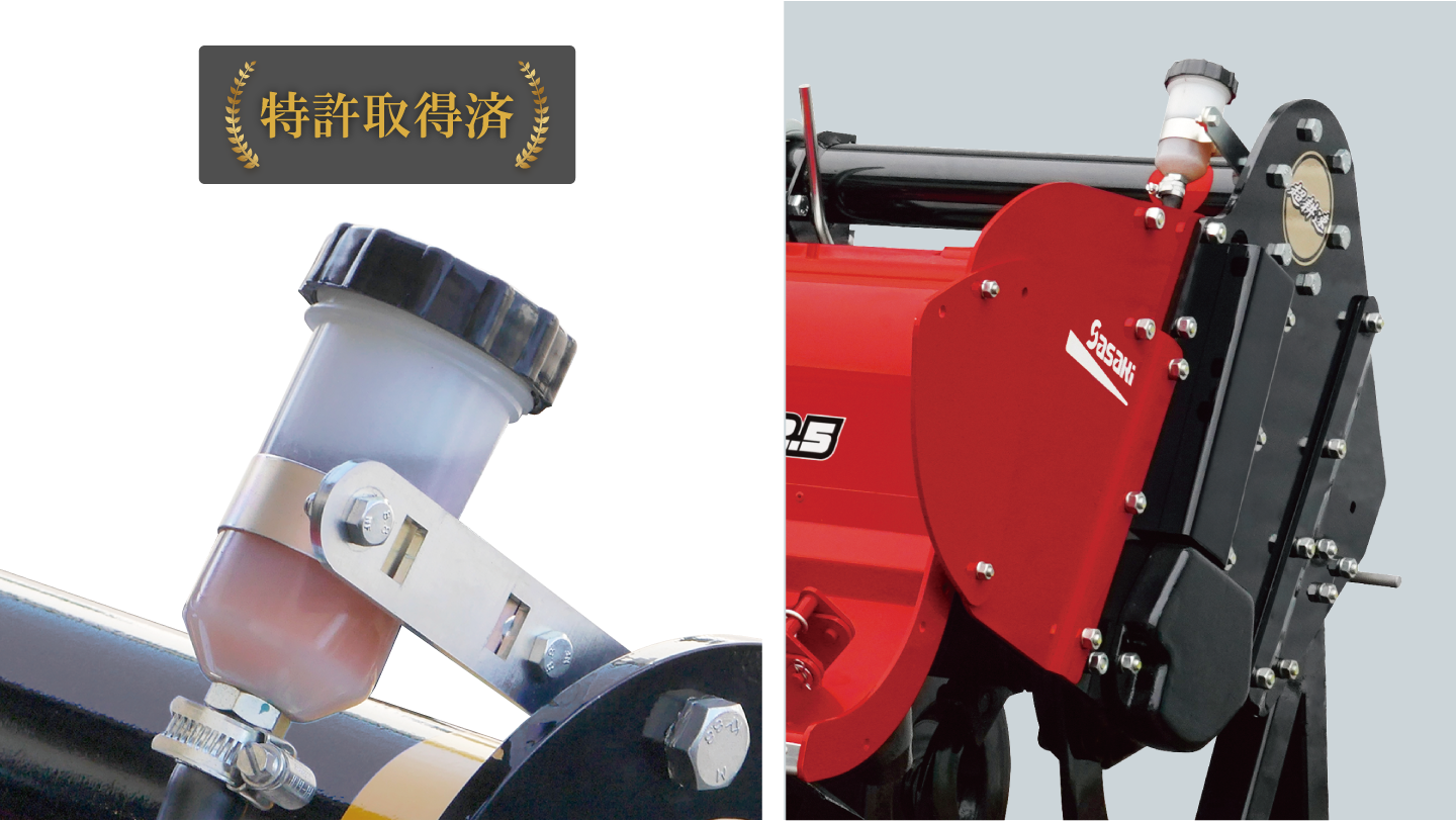重作業を想定してリザーブタンクを装備し、オイル残量を一目で確認できるようにしました。オイルの注ぎ足し補充も工具不要で簡単に行えます。