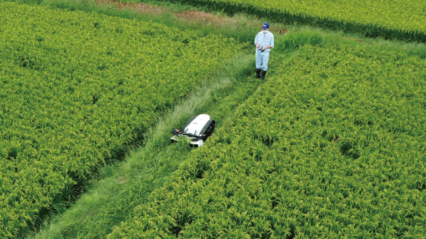 草刈機を肩がけしたり、中腰の姿勢で作業する事なく、リモコン操作で作業中の振動も無く、楽に作業が行えます。