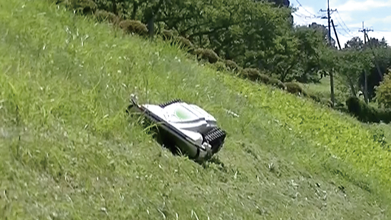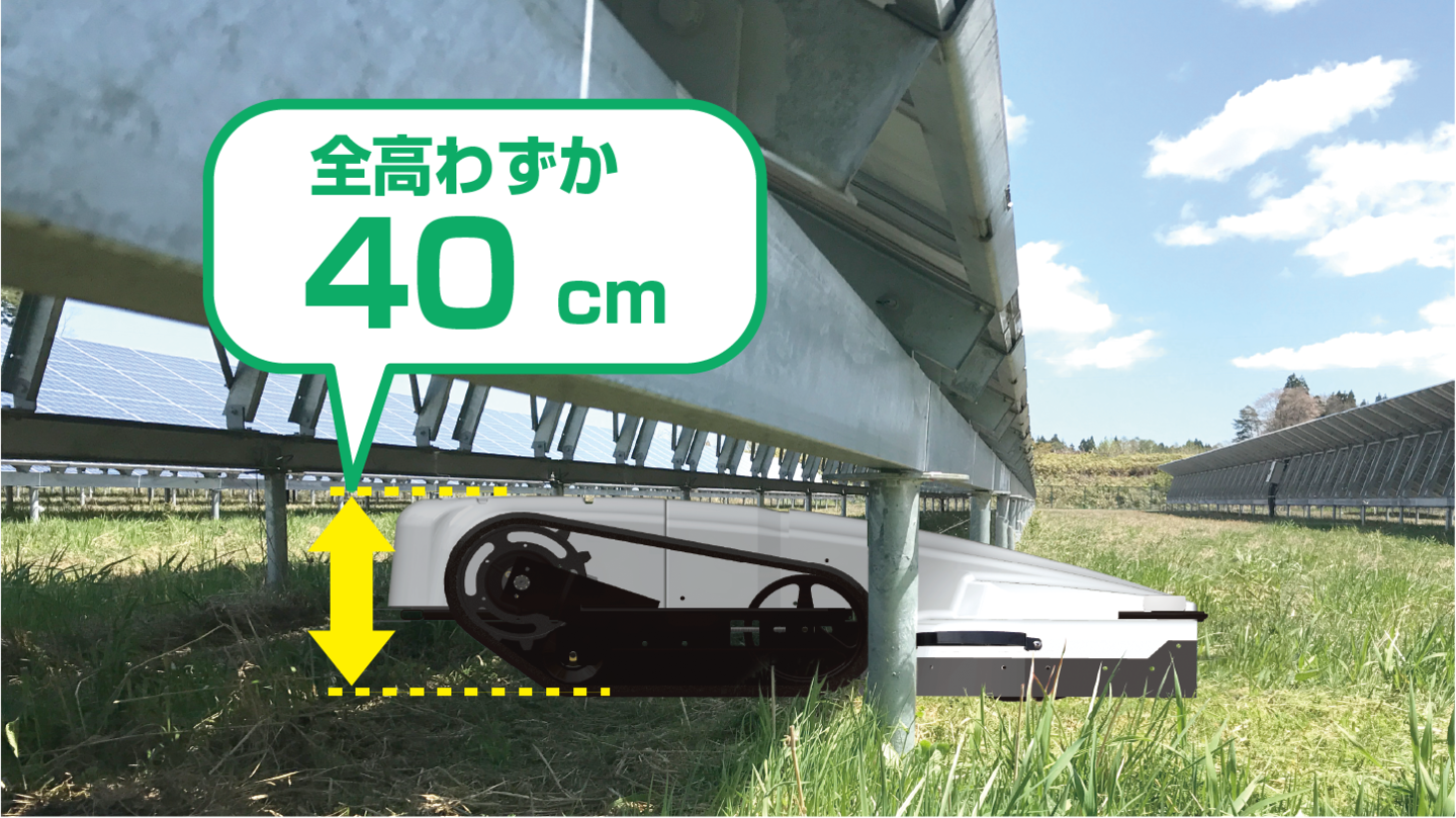 草刈アタッチは走行ユニットの全高よりも低いので、前後に操作することで、狭い隙間下の草刈をすることもできます。