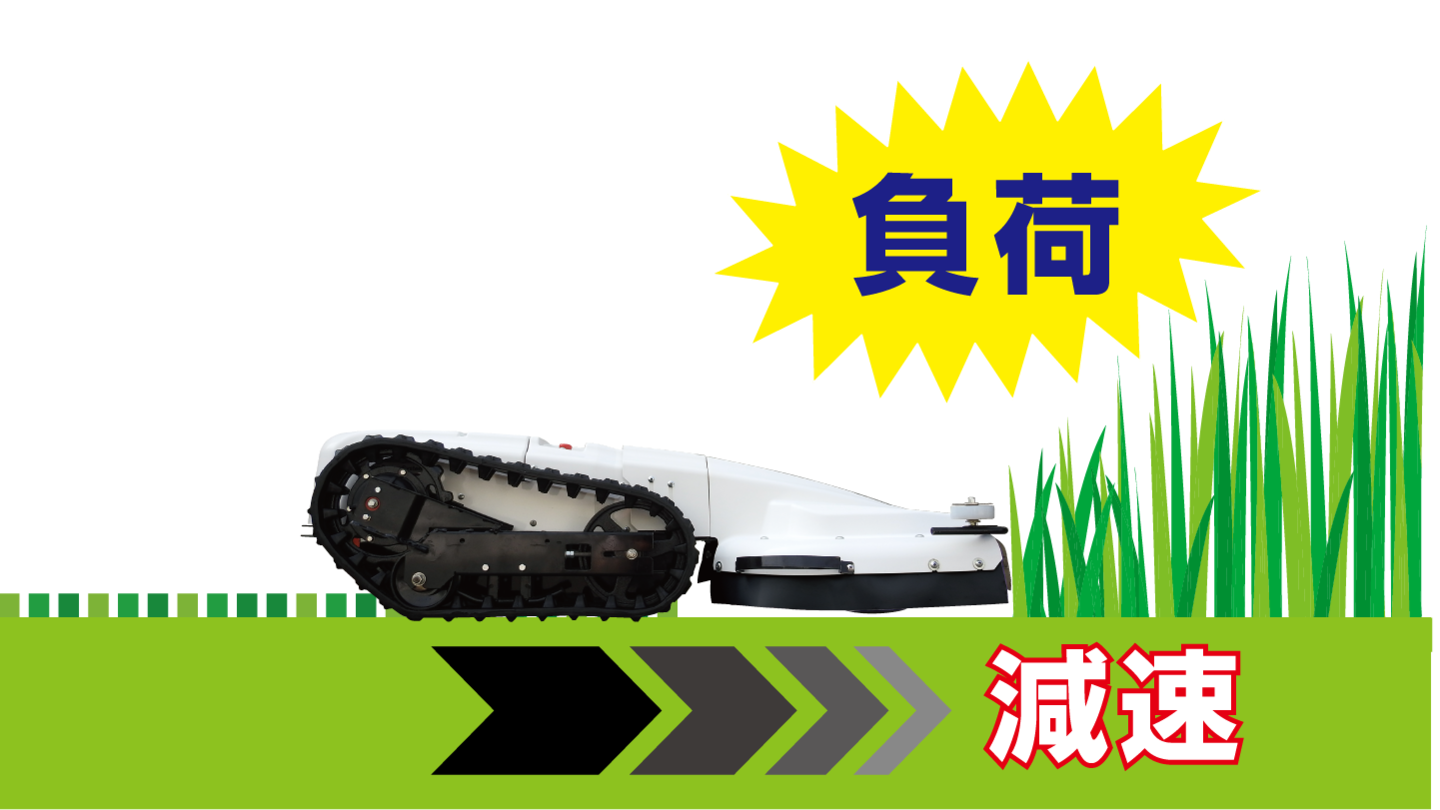 草刈り時に草刈りモーターに負荷がかかると自動で車速を減速し、負荷を軽減します。