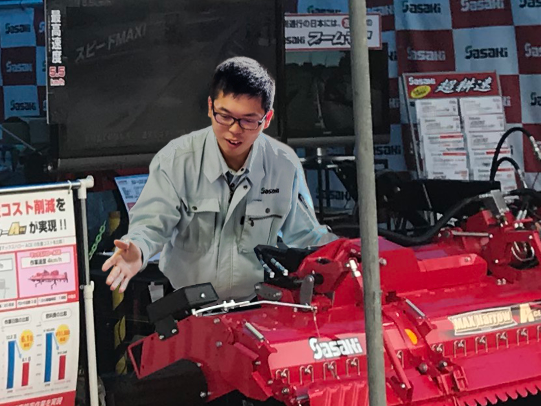 販売店セールスの方に農業機械の営業を行っています。新入社員研修の後新潟営業所に配属となり、現在は主に新潟県の魚沼地区・中越地区・下越地区のトラクタメーカーの販売会社や個人店を担当しています。