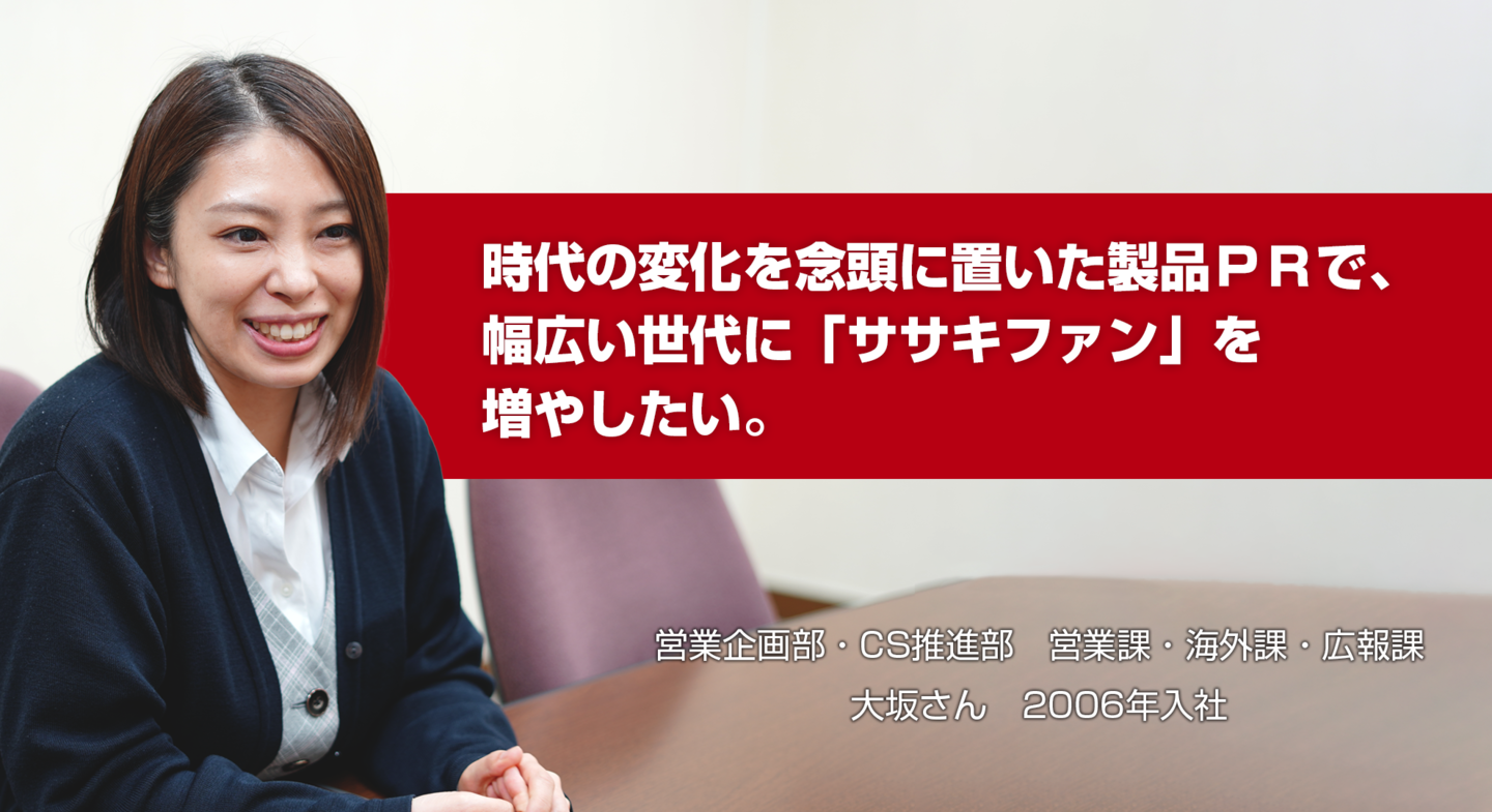 メディアが時代と共に移り変わって行く中、時代に合わせた形でいかにササキ製品の魅力を発信していくかが重要になります。ホームページの作成を皮切りに、YouTubeでの動画配信、最近ではInstagramでの情報発信にも挑戦しています。そうした繊細かつ挑戦的なPRをこれからも続けていき、幅広い世代にササキ製品のファンの輪を広げていきたいです。